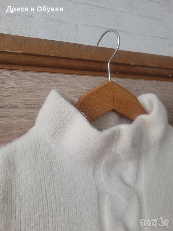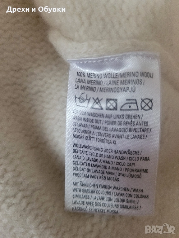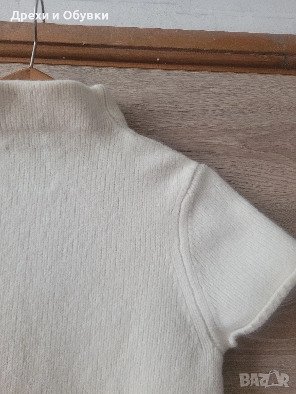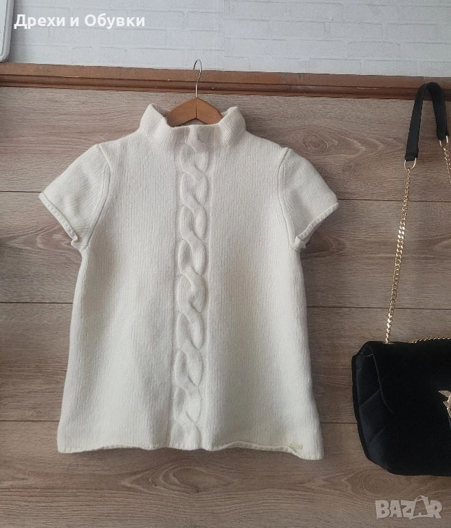 Пуловер Marc O’Polo – 100% мериносова вълна Оригинален пуловер Marc O’Polo от серията CORE, изработен изцяло от висококачествена мериносова вълна (100%). Мек, топъл и изключително комфортен, подходящ както за ежедневието, така и за по-елегантна визия. Материя: 100% мериносова вълна Цвят: екрю / кремав Къс ръкав ( перфектно може да се съчетава с риза под него). Висока яка Декоративна плетена плитка по средата Много нежна, типла и приятна на допир материя. Размер М. Гръдна 86-90см . Дължина 53см Реалната му цена е над 270лв. Моята е 120лв
