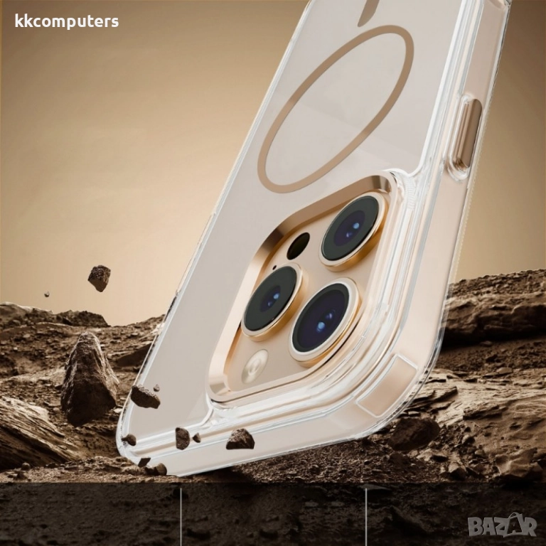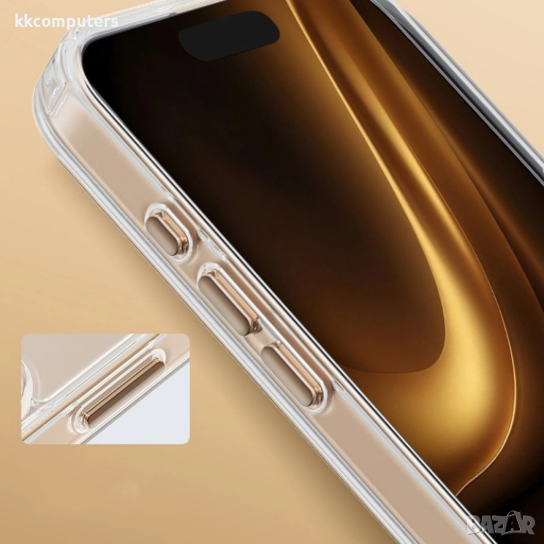 Силиконов кейс bSmart Clear Thin Magsafe, За iPhone 17 Pro (6.3), Златен и Протектор