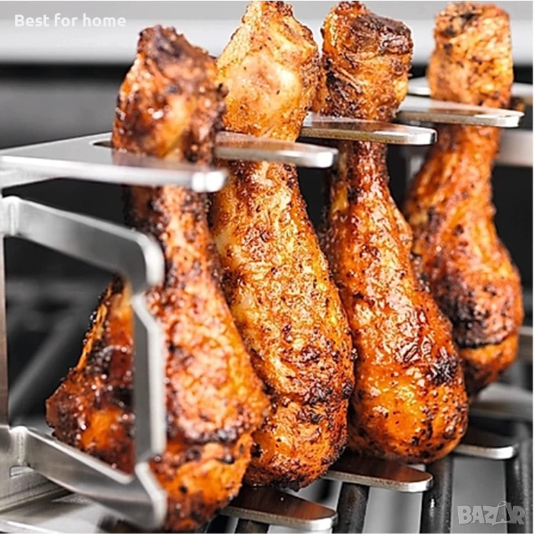 Подходящ за фритюрници с горещ въздух: перфектен като държач за свински корем, шницел, кордон блу и други. В фритюрника с горещ въздух решетката на грила позволява оптимална циркулация на въздуха около месото, постигайки хрупкави и равномерно сготвени резултати.