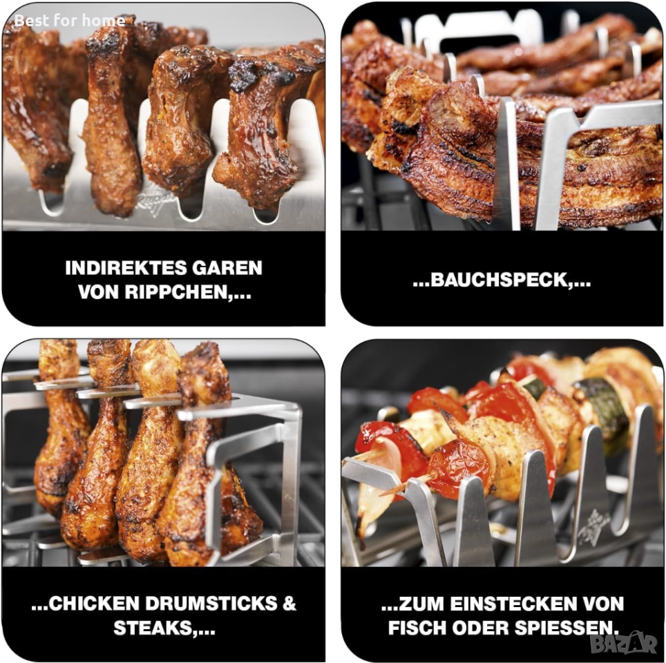 Баварска мултигрил решетка Rescher, здрава неръждаема стомана, идеален ъгъл за месо, лесно индиректно печене на скара, аксесоари за фритюрник с горещ въздух, максимално удоволствие от скара и наистина хрупкава коричка.