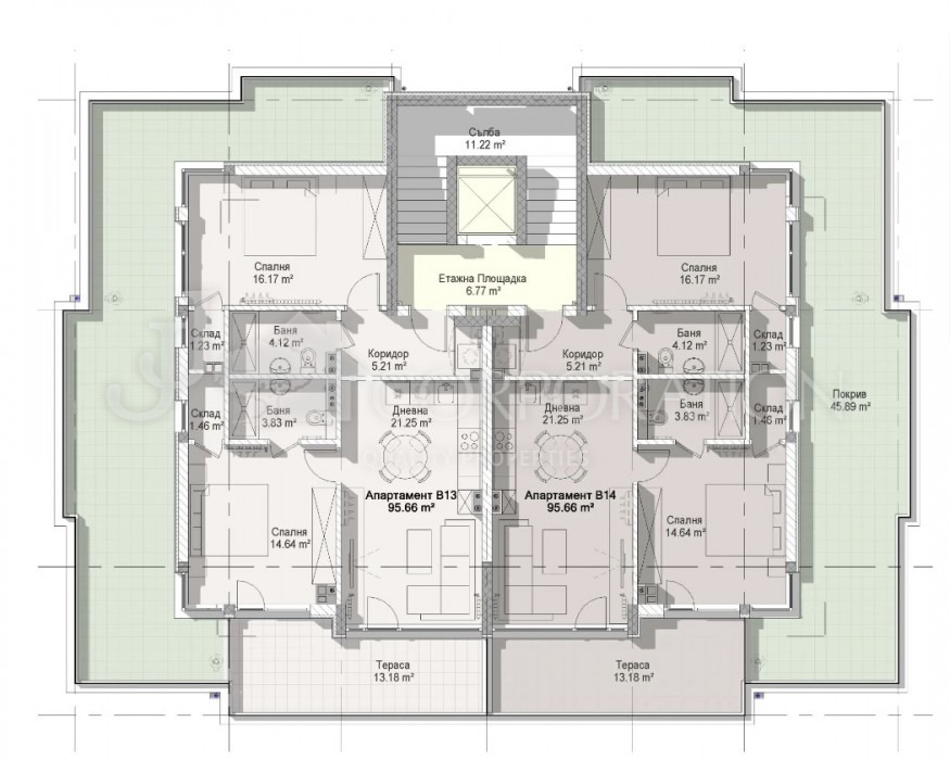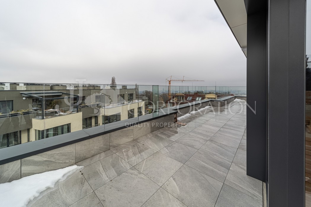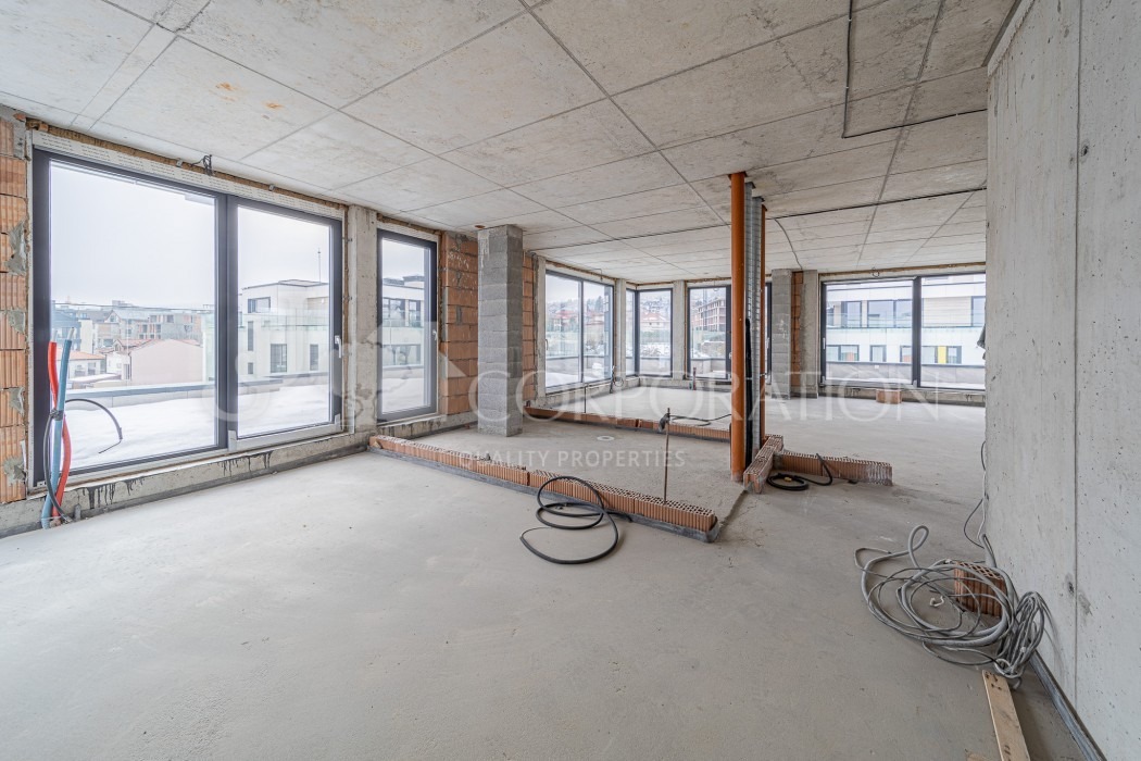 Пентхаусът, който ви представяме включва два двустайни огледални апартамента, които до този момент не са разделени със стена, разположен на четвърти (последен) етаж, с обща площ от 219 кв.м и голяма тераса на покрива с панорамна гледка 91.78 кв.м.