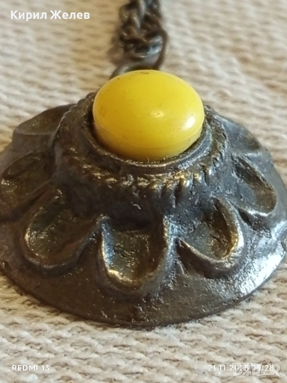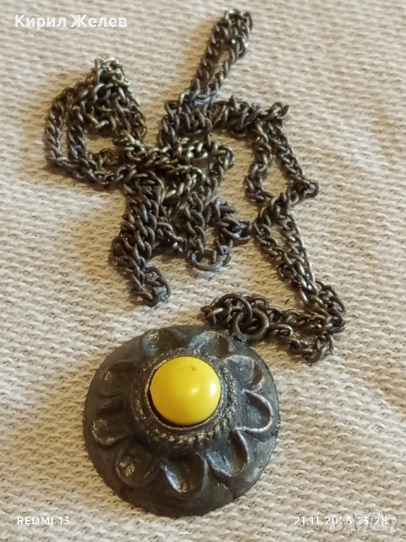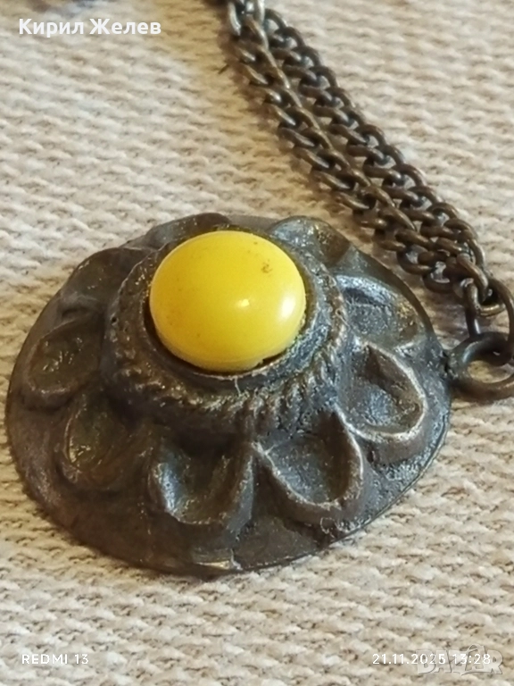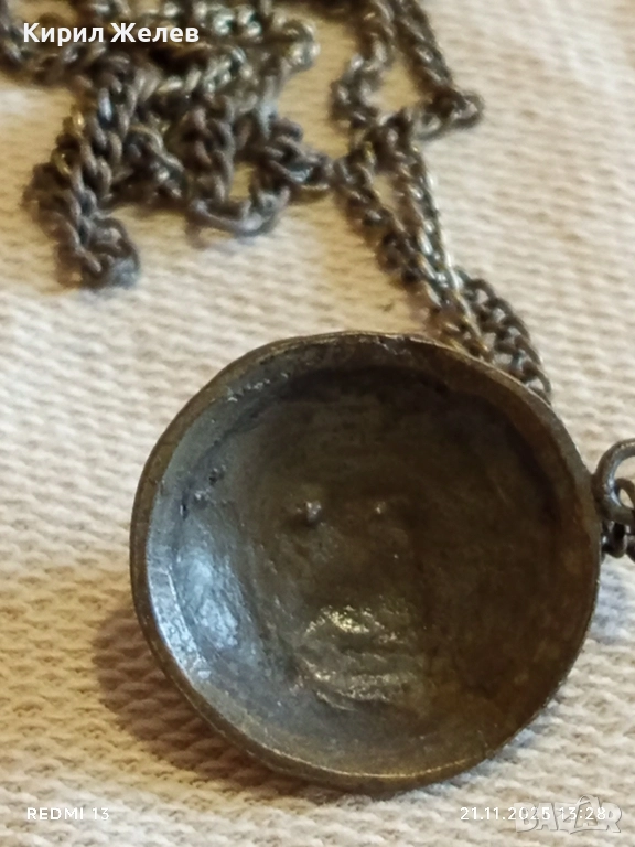 СТАР ЕТНО АРТ БРОНЗОВ МЕДАЛЬОН с БРОНЗИРАНА СТОМАНЕНА ВЕРИЖКА 31369