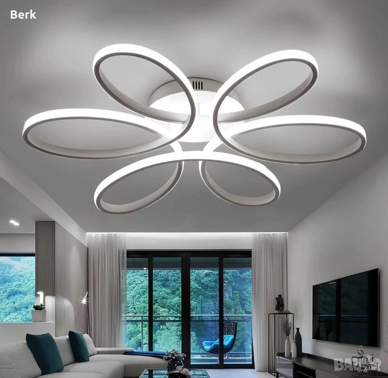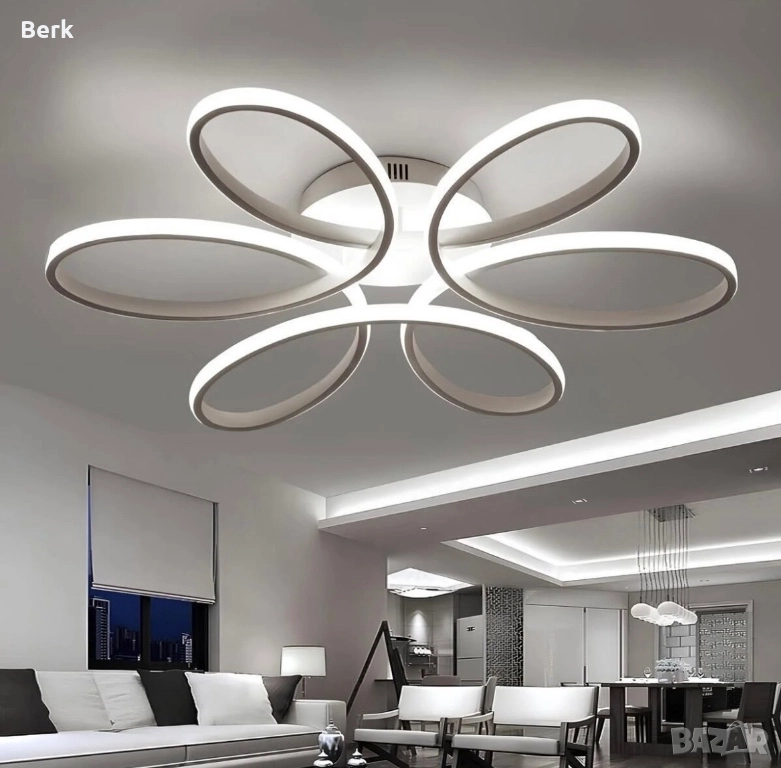 Таванна лампа с елегантен и модерен дизайн, вдъхновен от формата на цвете, внасящ нежност и естетика в помещението.Енергоспестяващ LED модул