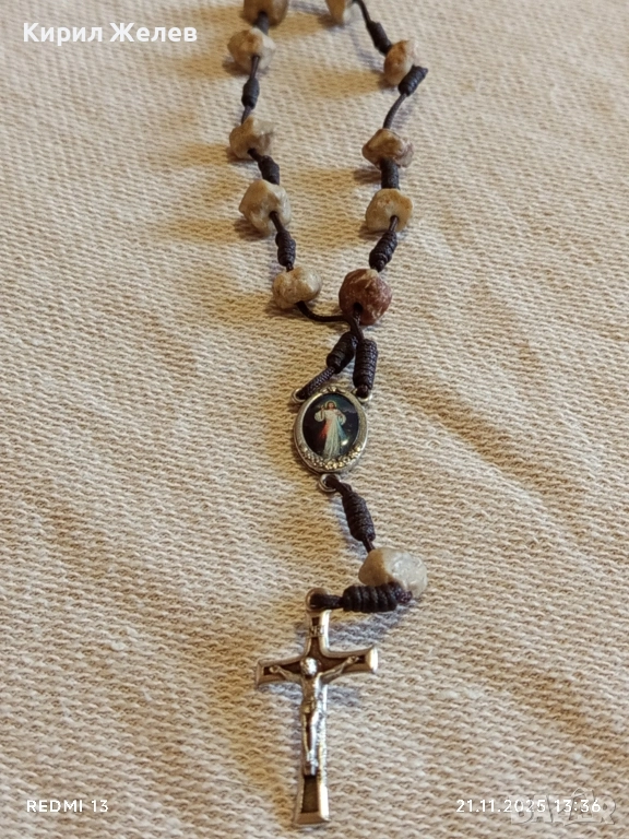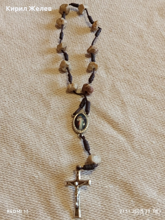 БРОЕНИЦА от ТРОШЕН КАМЪК на ВЪЖЕ с КРЪСТ ДЕВА МАРИЯ от МЕЖДУГОРИЕ 41720