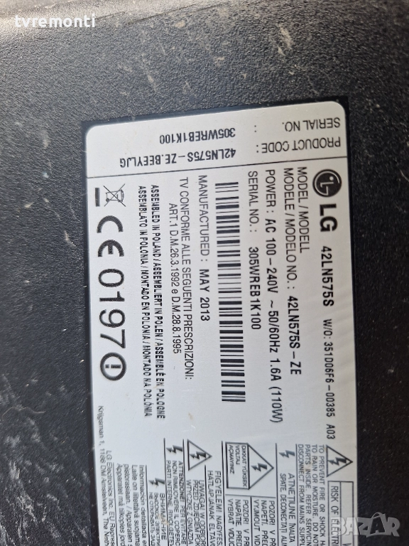 Модел дисплей: LC420DUE SFR3 от телевизор LG Модел 42LN575S
