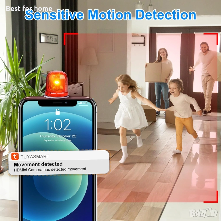 【Засичане на движение】Преносимата мини камера има функция за засичане на движение. Когато засече движение, тя ще заснеме снимката и ще ви изпрати съобщение, за да ви предупреди на мобилния ви телефон.
