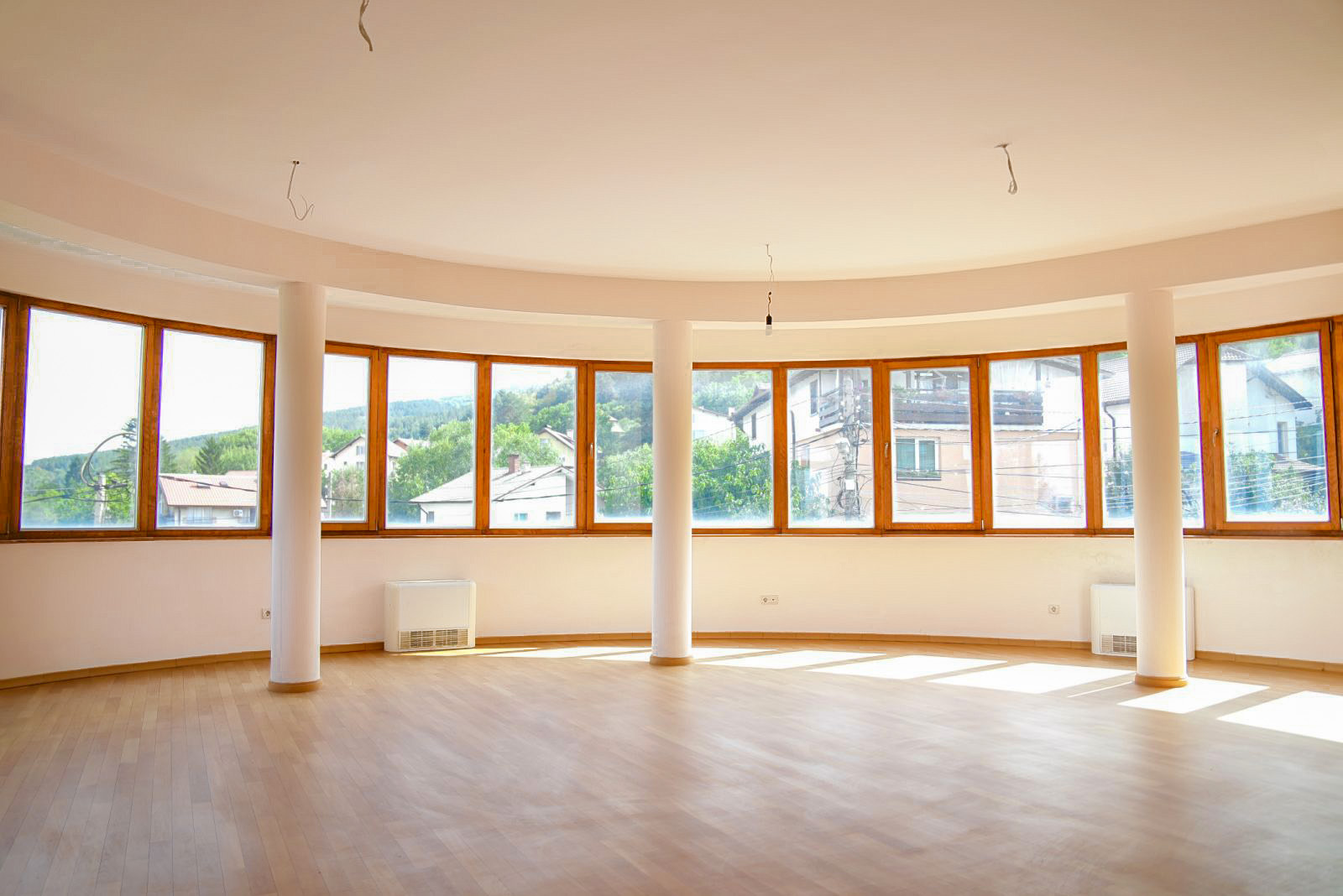 Имаме удоволствието да предложим на Вашето внимание изключителна жилищна сграда с двор и впечатляваща панорамна гледка, разположена в подножието на Витоша.