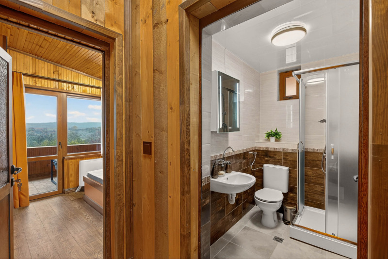 Първият етаж със застроена площ 86 кв.м се състои от дневна с кухненски бокс и трапезария, просторен хол, веранда, две спални, коридор, баня с тоалетна и самостоятелна тоалетна. Вътрешно стълбище води до втория етаж, който включва три спални, две от които са с излаз на тераса, коридор, баня с тоалетна, складово помещение и килер.