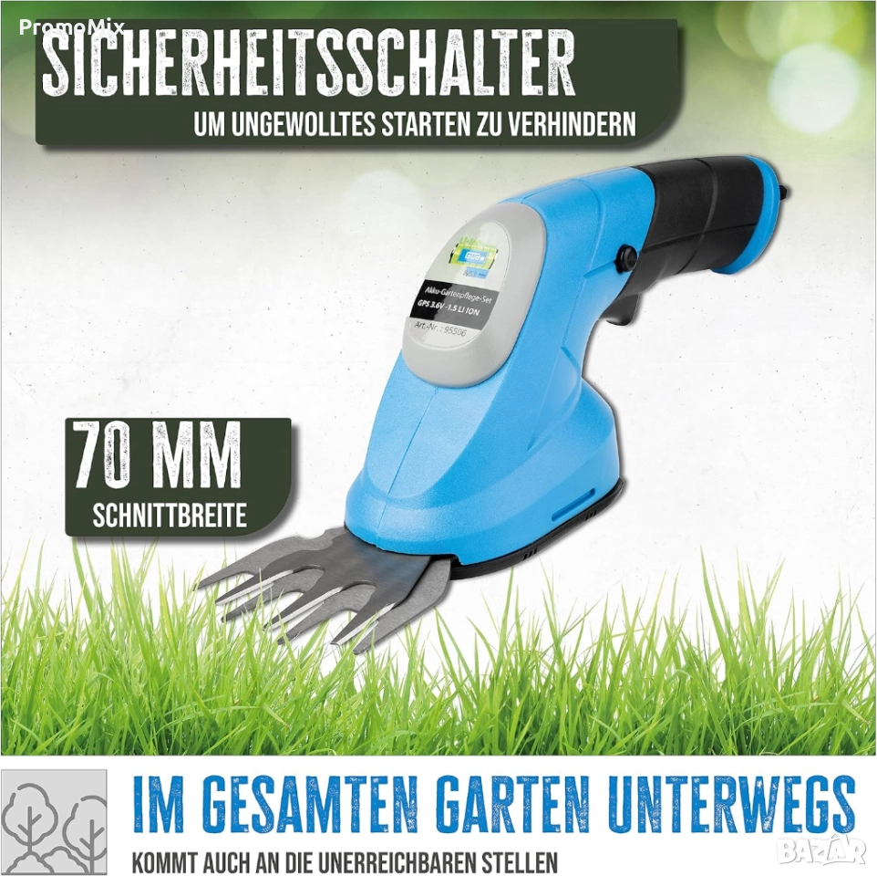 акумулаторна ножица за подрязване на трева, храсти, жив плет и др. с мощна литиевойонна батерия 3.6V/1.5Ah.
