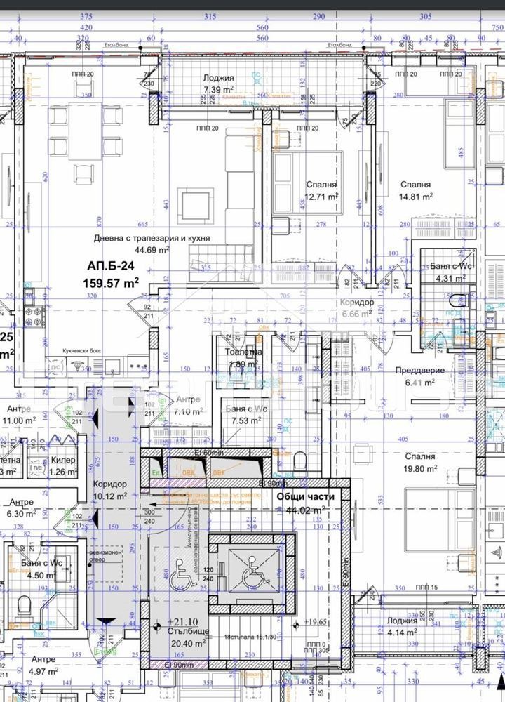 -дневна с трапезария и кухня- 🔹45 кв.м., с излаз на лоджия.
