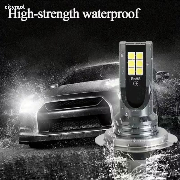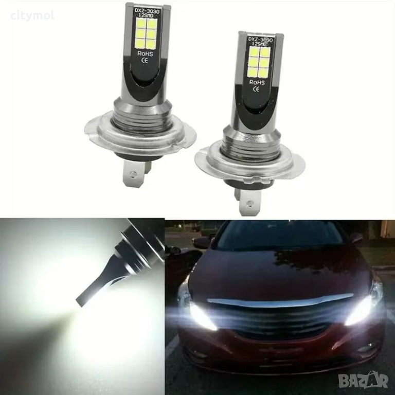 H7 LED лампи за фарове, 12SMD 3030 LED чипа, 55W - комплект 2 бр.
