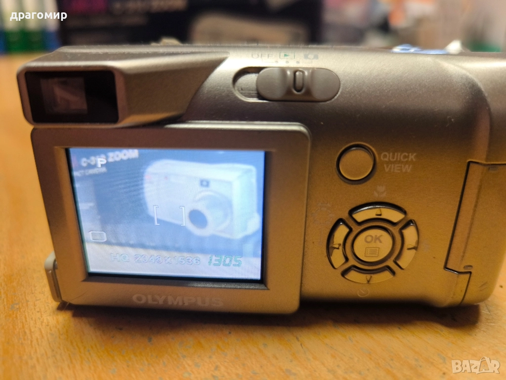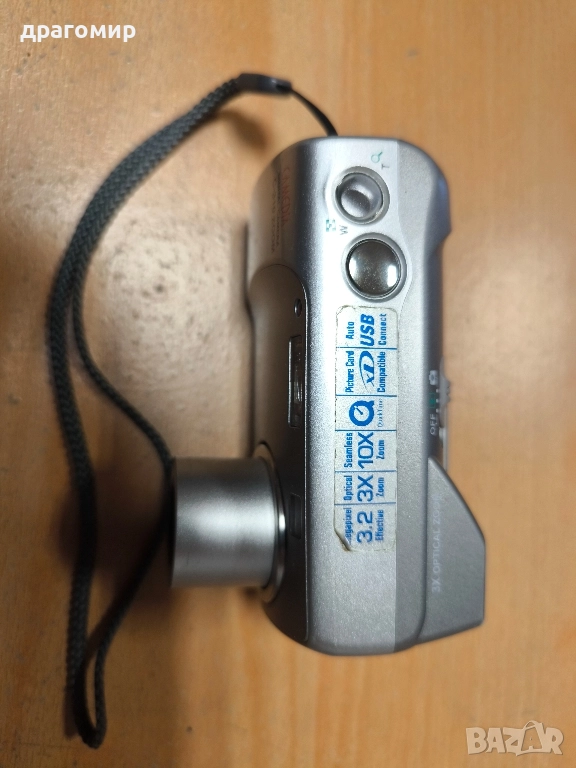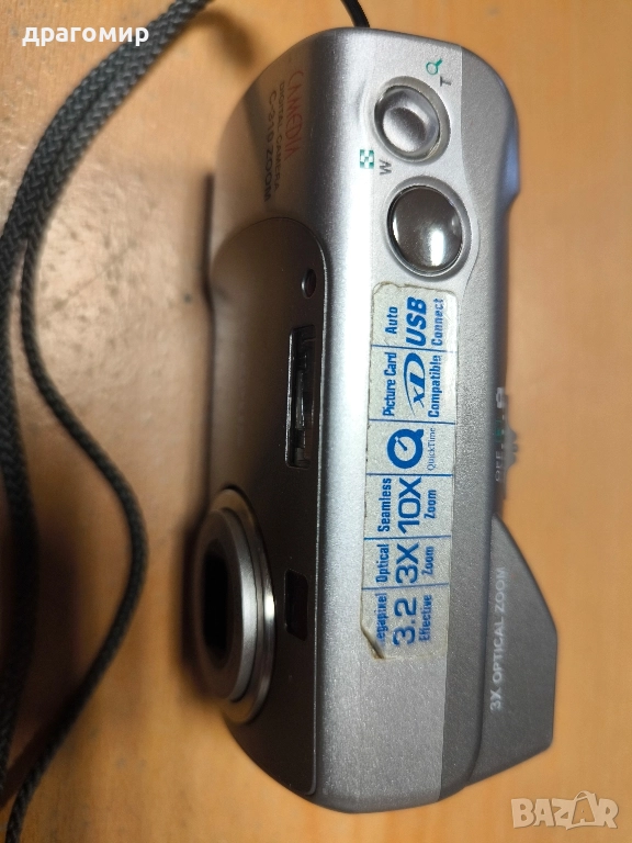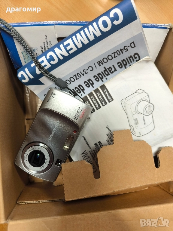 продавам фотоапарат работещ, OLYMPUS CAMEDIA C-310 ZOOM,с карта Olympus 1 GB, работи с две батерии АА по 1, 5 v, има забележка при спиране не се затваря обектива до край видно на снимката,но не му пречи за нормалната работа, има оригинална кутия и книжки за експлоатация,имам още много други фотоапарати, камери, обективи, чанти, светкавици, батерии, зарядни устройства, касети, филтри, ремъци, ленти, при закупуване на повече неща отстъпка