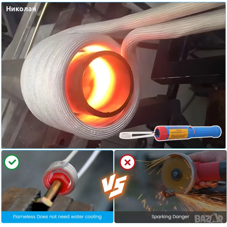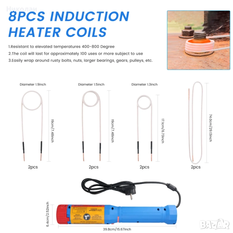 Инструмент за топлинна индукция се използва за нагряване на резбовани гайки и ръждясали винтове чрез нагряване, за да се улесни разхлабването на заседнали метални части. Широко използван в домашен гараж или ремонт и демонтаж на фабрично оборудване.