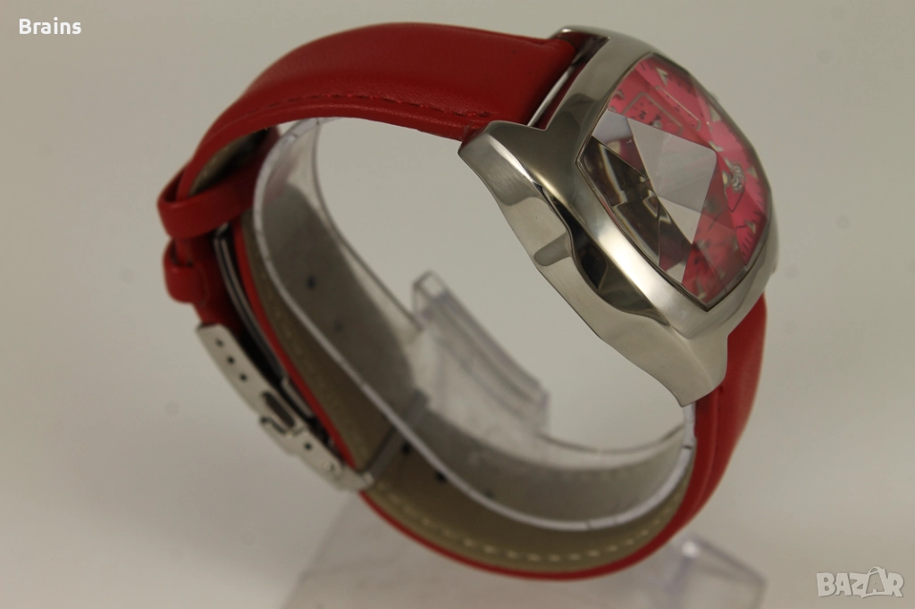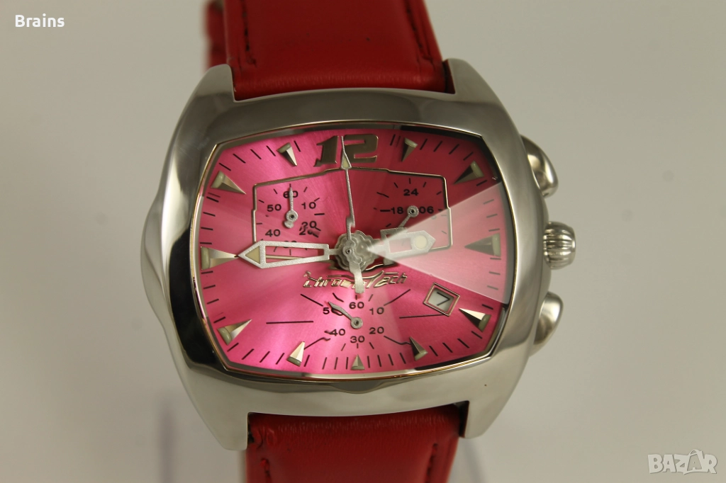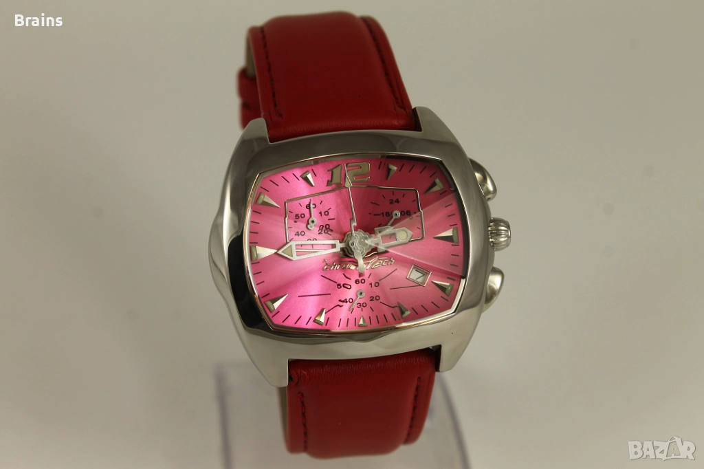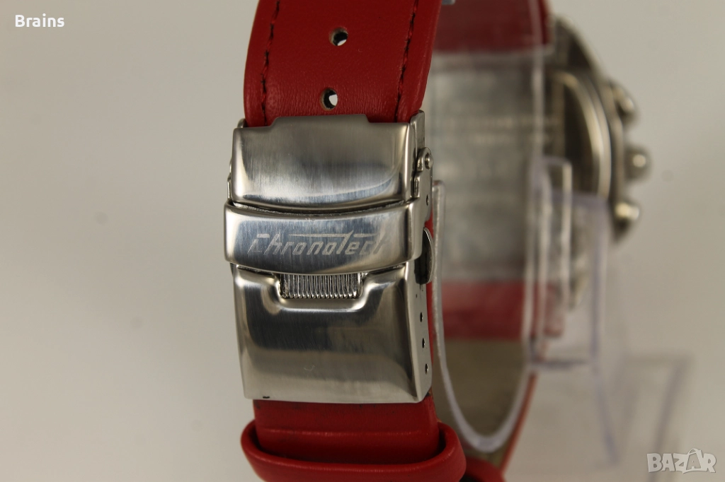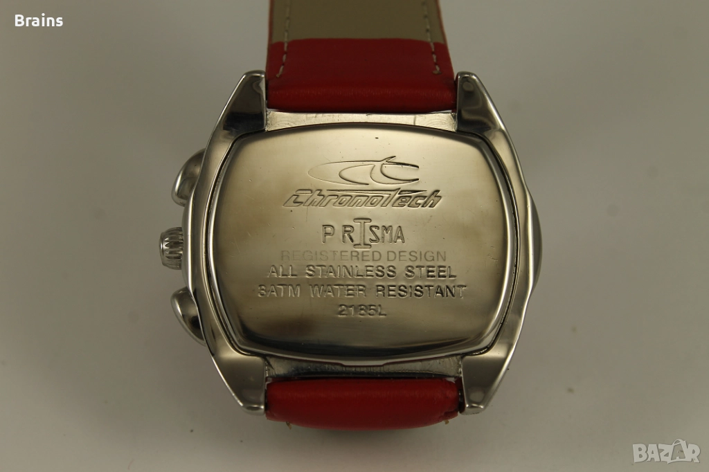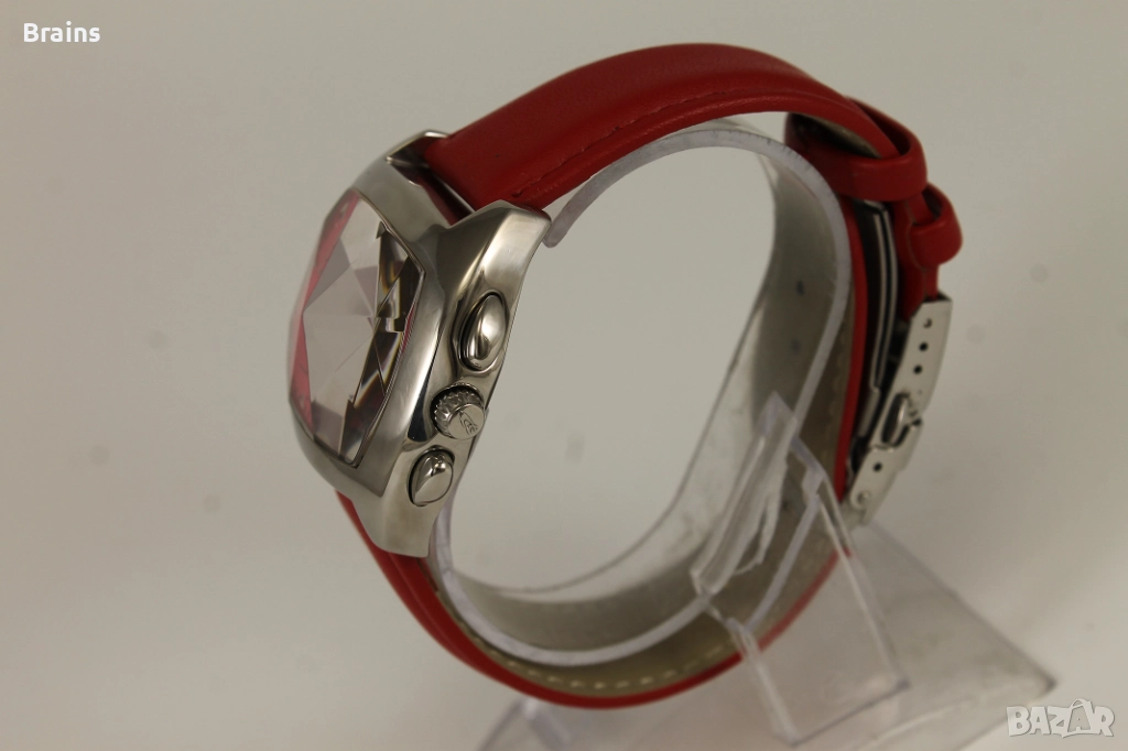 Дамски кварцов хронограф Chronotech Prisma. Касата е изработена от неръждаема стомана. Японски кварцов механизъм - хронограф. Интересен модел - стъклото е във формата на осмоъгълна призма. Часовника работи точно, хронографа работи. Отлично визуално състояние, без забележки.