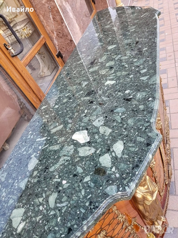 Изработен от дърво с красив мрамор и богат бронзов обков.
