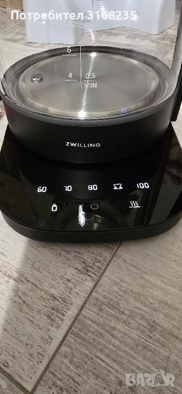 Zwilling Enfinigy 53102-501-0 с обем 1,7 л, ползван 2-3 пъти и е в отлично състояние. Липсва филтър за чай който може да бъде закупен отделно.