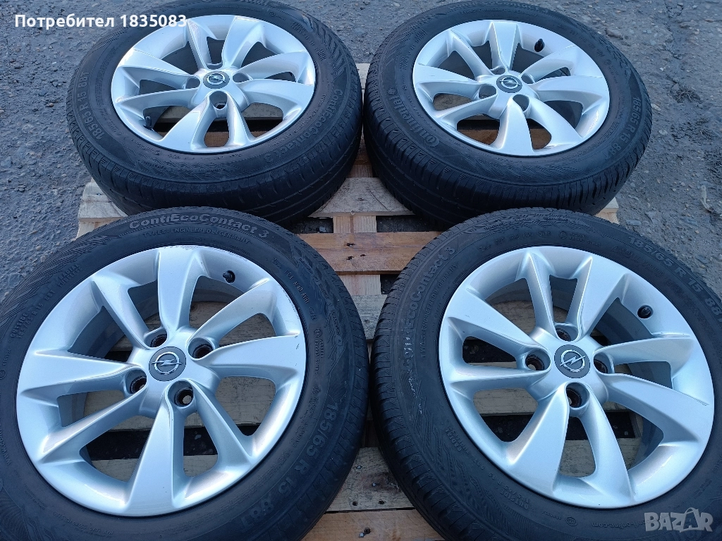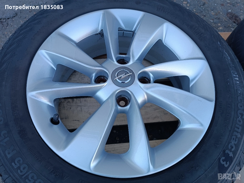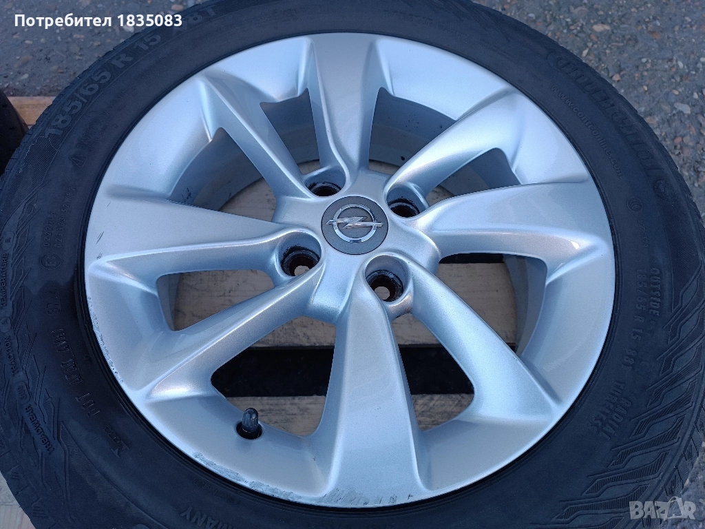 Лети джанти 15ки 4х100 Opel + летни гуми 185/65/15 Continental → Обява 52495443