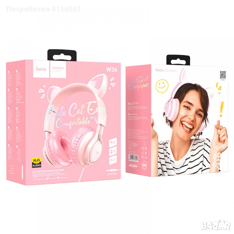 СЛУШАЛКИ-Котешко ухо, с микрофон, Розов → Обява 52495593