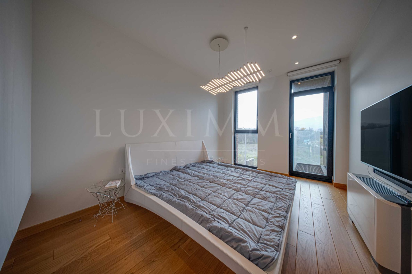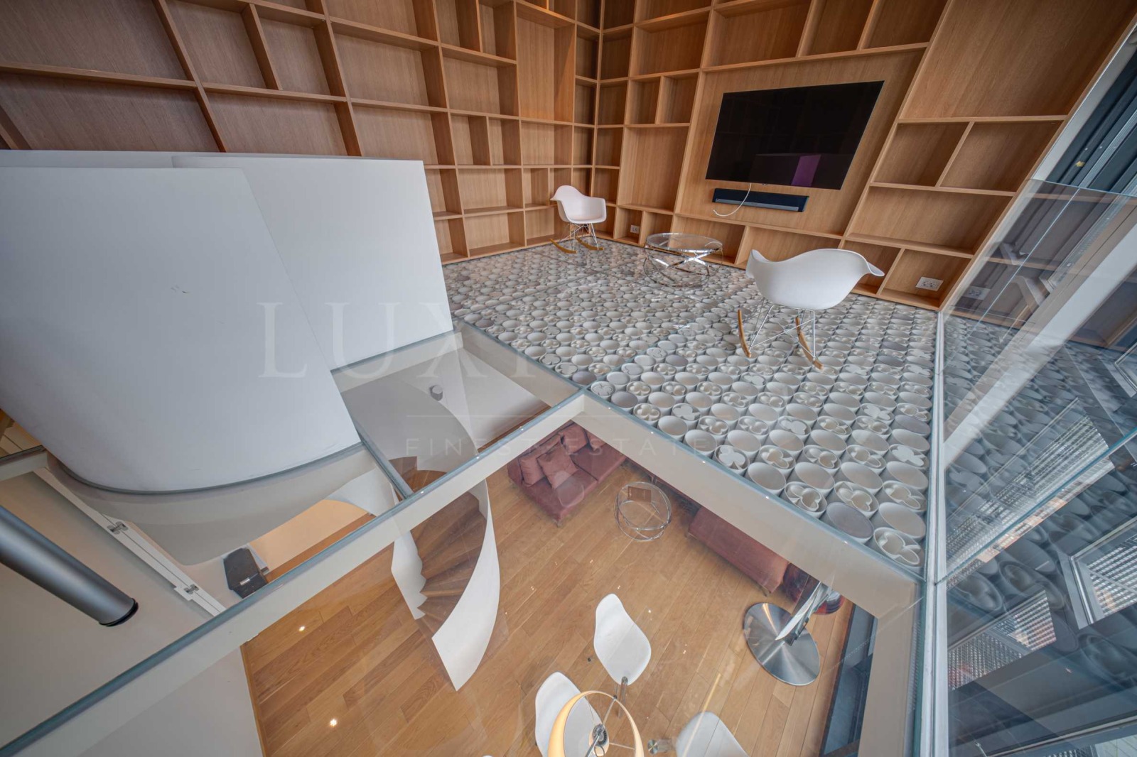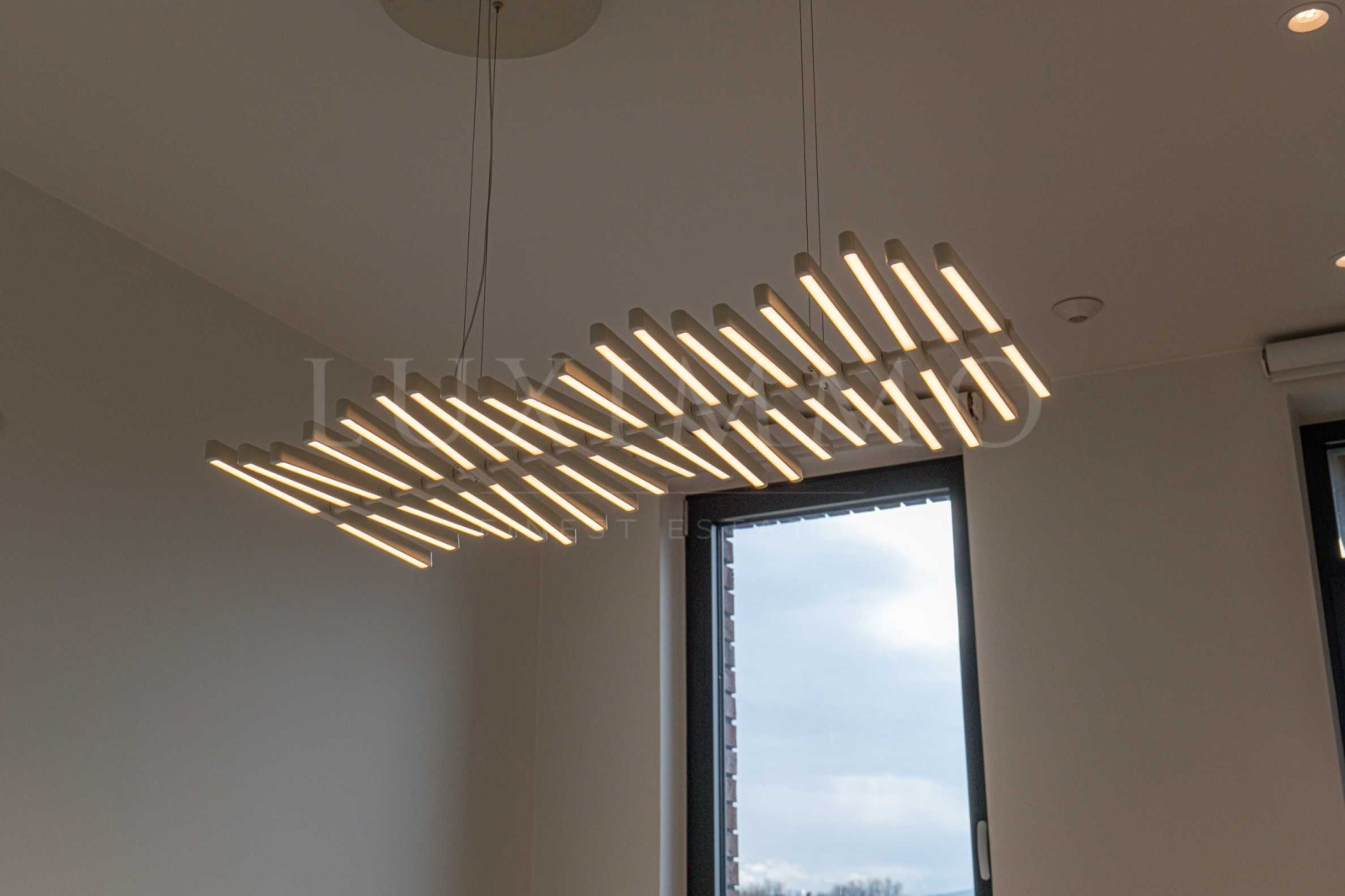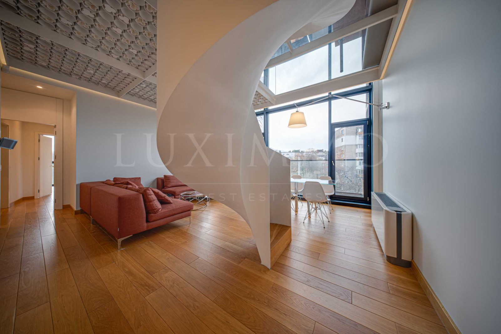 Вътрешното пространство е организирано с мисъл за елегантен и удобен живот. Дневната зона е впечатляващо просторна, с високи тавани и емпоре красиво и функционално място, което може да се превърне в домашен офис, арт кът или уютна библиотека. Обзавеждането е от висок клас: мебели от Roche Bobois и Valian, дизайнерско осветление Vibra, премиум техника MIELE всеки детайл е подбран така, че да допълва атмосферата на изисканост.