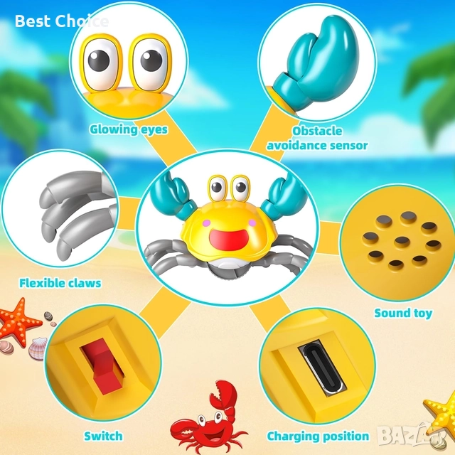 Интерактивна музикална играчка "Бягащ рак" (Runaway Crab).