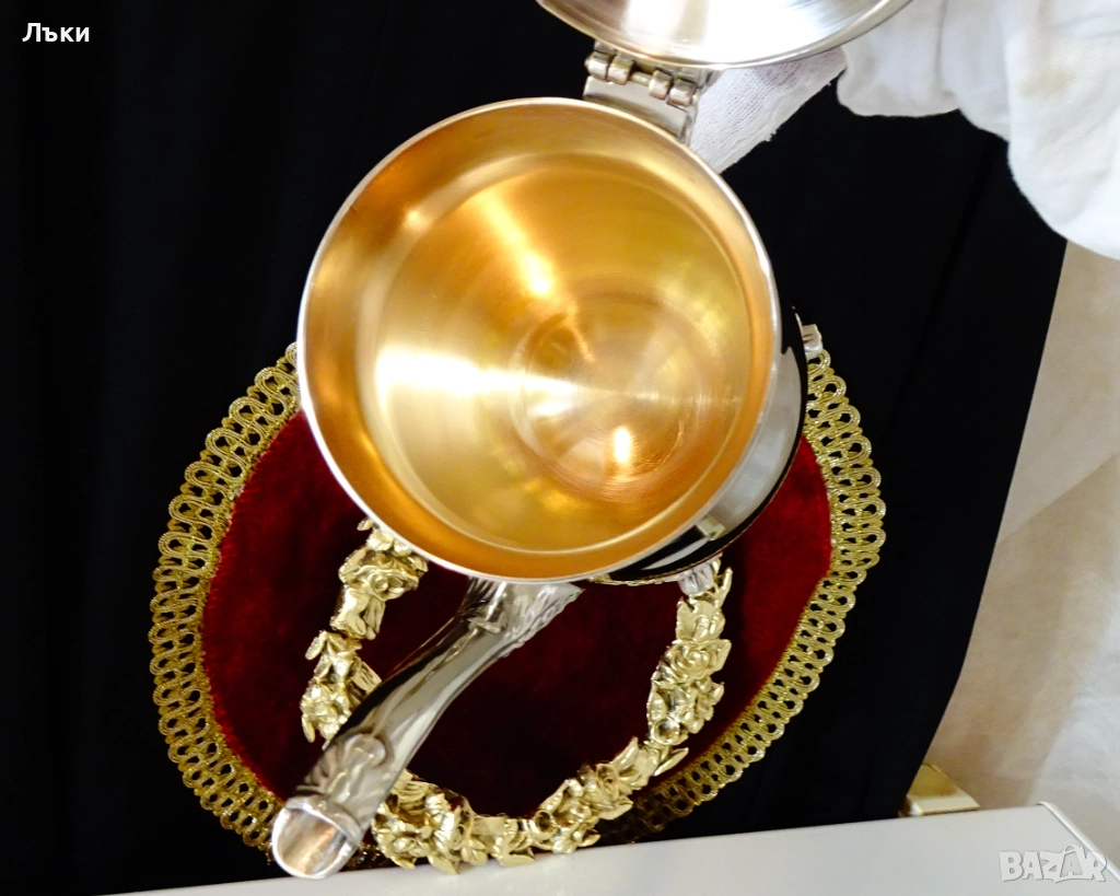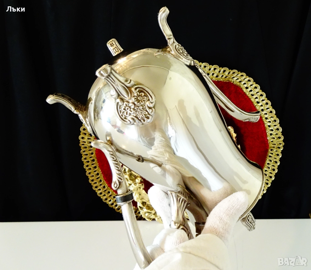 блясък.От вътре е позлатена.Декорирана с прецизно изваяни релефни цветя и орнаменти
