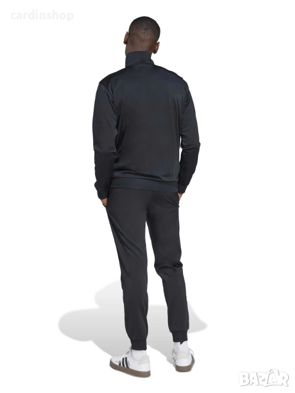 Adidas, оригинален, нов с етикет. Горнището и долнището имат два странични джоба. Кройката на долнището леко се стеснява леко по крака и най отдолу е с ластик. Материята e мека и приятна - 100% полиестер