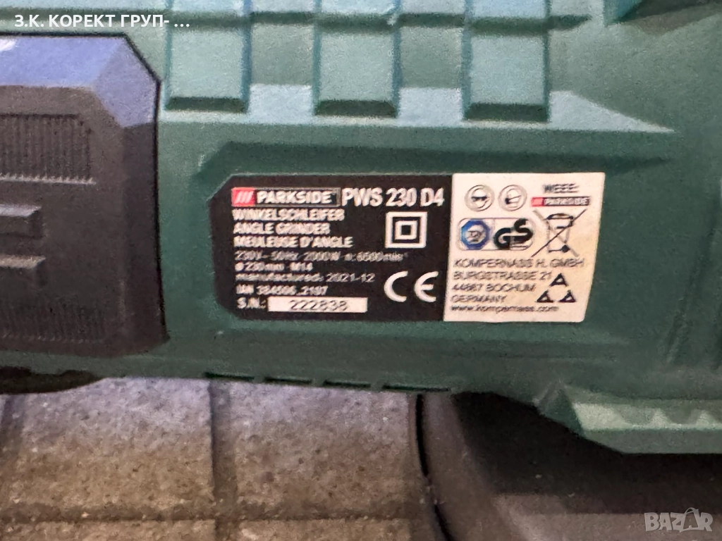 Продавам Ъглошлайф Parkside PWS 230 D4. В доста добро състояние без следи от употреба. Използван е не повече от три пъти. Идва в комплект с диска от снимката и предпазителя + дръжката (стабилизацията). ПРедлага се без кашон и гаранция.