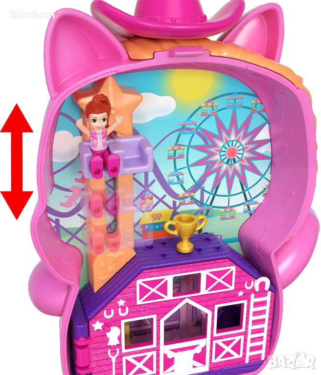 Децата ще се потопят в едно вълнуващо родео с този невероятен комплект от Polly Pocket. Той идва в кутия с очарователен дизайн, а когато я отворят малчуганите ще открият родео карнавал на много нива с включени фигурки и аксесоари, с които да се впуснат във весели игри.