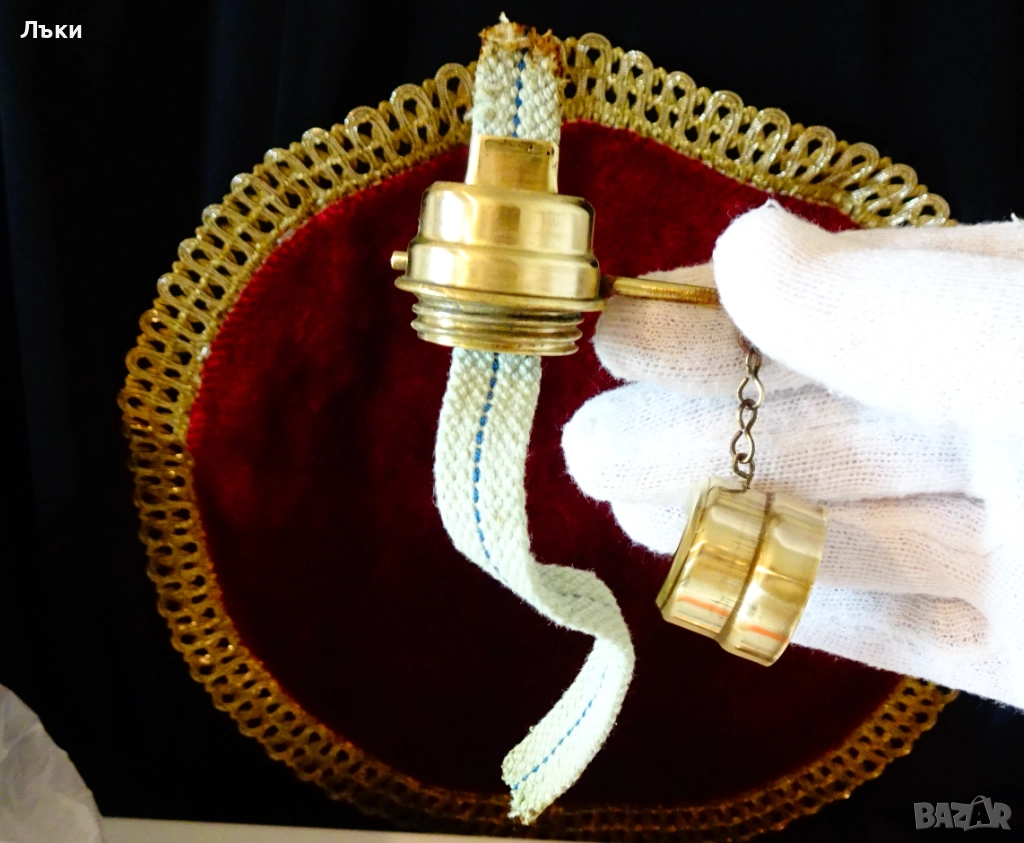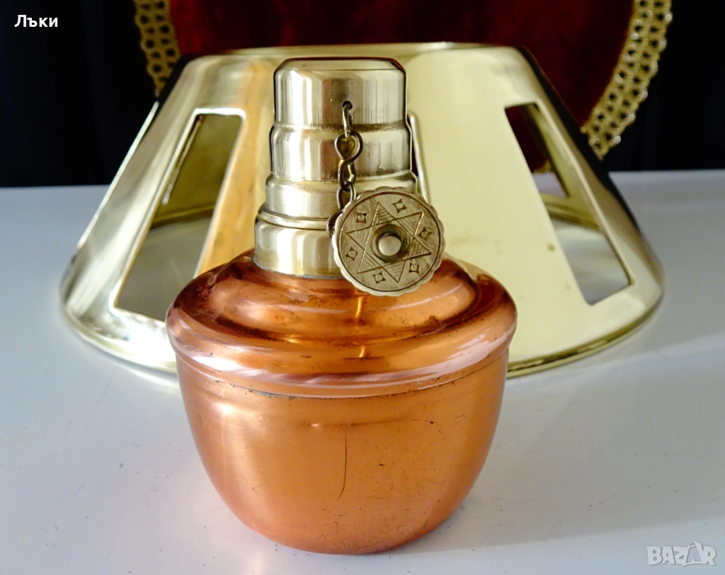 чиста червена мед.Има оригинален фитил и капаче за загасване на огъня и да не
