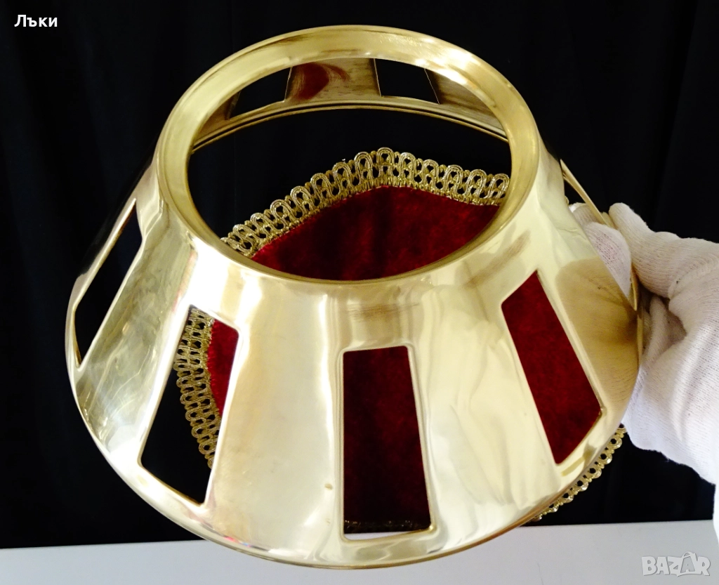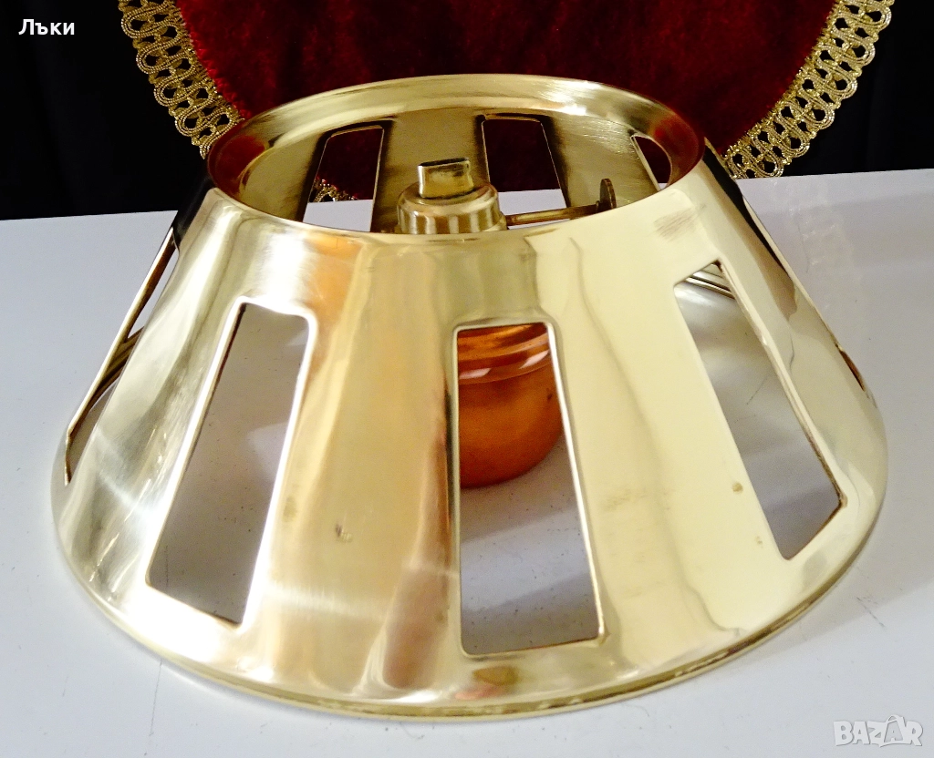 як месинг.Височина 10 см.,диаметър на основата 22.5 см.,тегло 180 гр.Цена 24 лв.