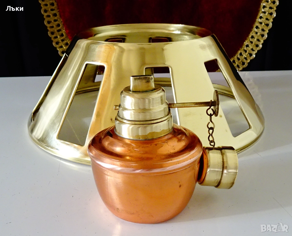 - меден спиртник с фитил,горелка – ръчно изработена от