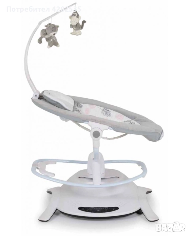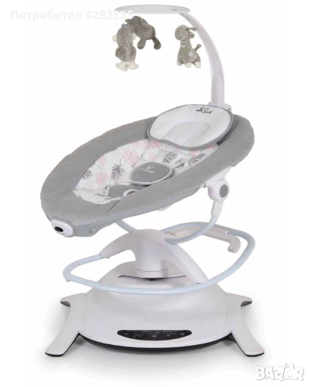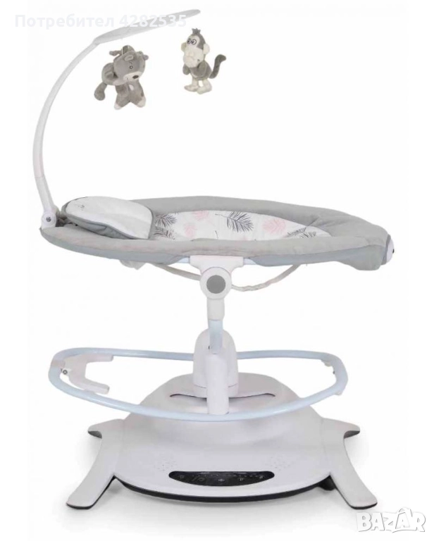 Невероятно удобство за бебета и родители - незаменима в отглеждането на малкото детенце, още от самото му раждане! Едновременно удобен шезлонг, комфортно и уютно местенце за лек сън, както и автоматично задвижваща се люлка. Меката допълнителна основа осигурява нежна прегръдка на бебчето, без да предизвиква запарване и изпотяване, с релефна възглавничка и здрави дунапренени уплътнители за странично поддържане. Коланът ви дава възможност да го обезопасите, а играчките в комплекта са закачлив аксесоар с любимо предназначение.