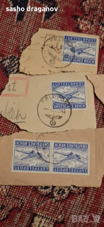Оригинални парчета от писма с видими военно-полеви печати (Feldpost). Това вдига цената малко, защото колекционерите ценят автентичния плик и печат.