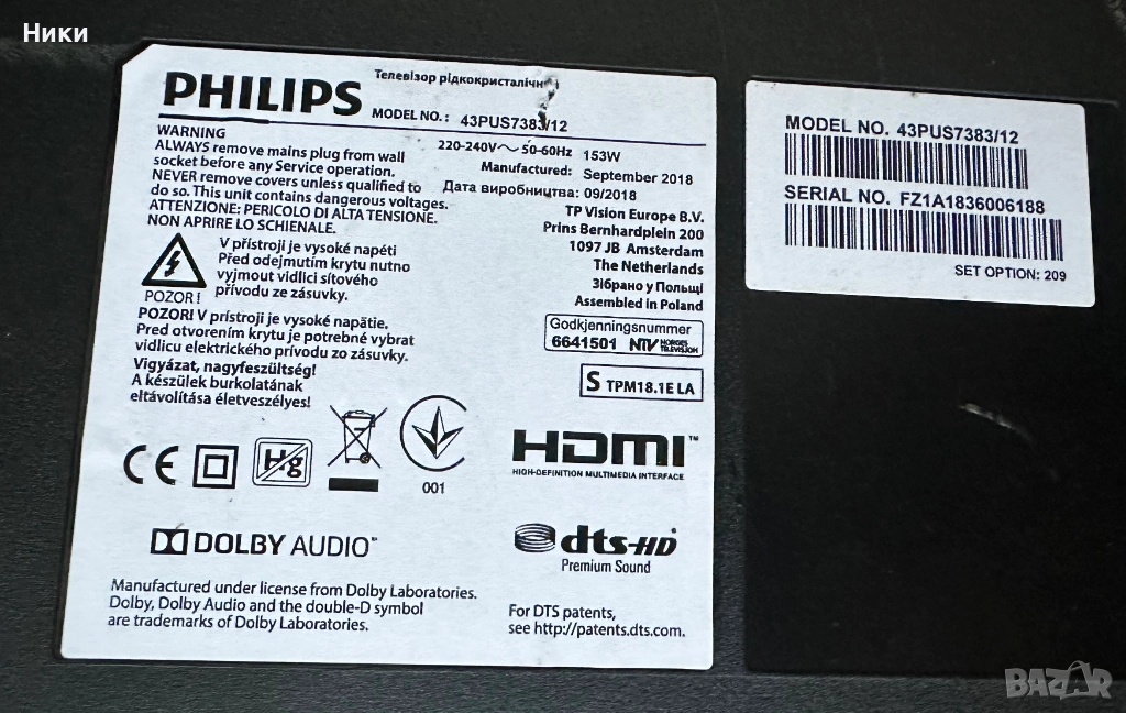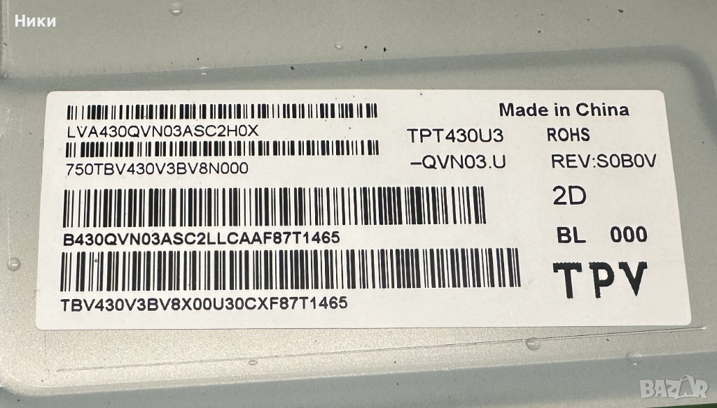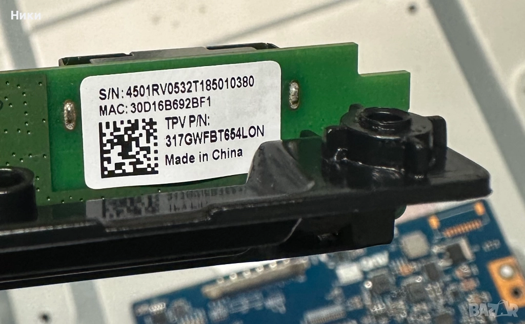 Wi-Fi Modul WCBN4501R_V05 от телевизор Philips 43PUS7383/12 Модула е работеща и свалена от работещ телевизор със счупен дисплей. Модела на дисплея еTPT430U3-QVN03.UИзпращам по ЕКОНТ с опция тест и преглед!!! С оглед и проба на това, че модулите нямат гаранция, след прегледа, теста и заплащането не приемам възражения и ракламации, щото предварително всички платки и модули са тествани и в изправно състояние се пращат!!!