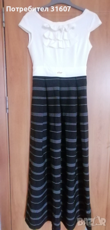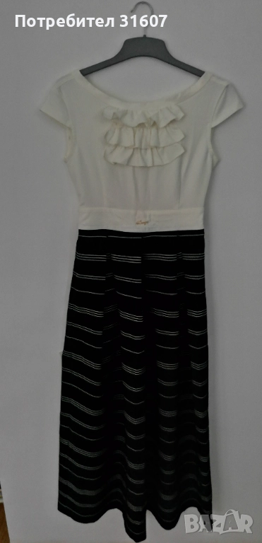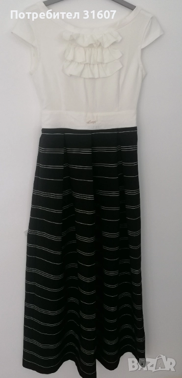Дълга, елегантна рокля на марката LUCY в класическата комбинация черно и бяло. Размер М. Отлично състояние.