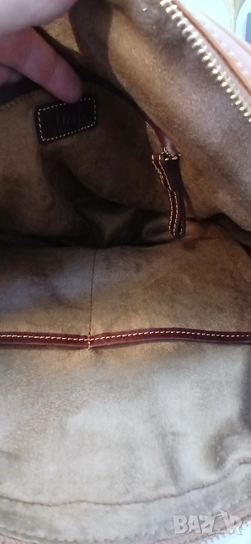 Нова оригинална чанта от естествена кожа телешки бокс в цвят охра и шоколадово кафяво.Голяма,удобна,шик от Италия.