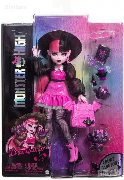 Тази кукла от Monster High е наистина магическа вампирка! Дракулора показва своя уникален моден вкус, облечена от глава до пети в розово и черно. Нейният перфектен домашен любимец, Count Fabulous, е до нея и изглежда толкова страшно-сладък, както винаги! С подвижното си тяло и ужасяващи аксесоари за разказване на истории, куклата Дракулора е страхотен подарък за деца на възраст 4 години и нагоре. Напълно артикулирана. Куклата не може да стои сама. Цветовете и декорациите могат да се различават.