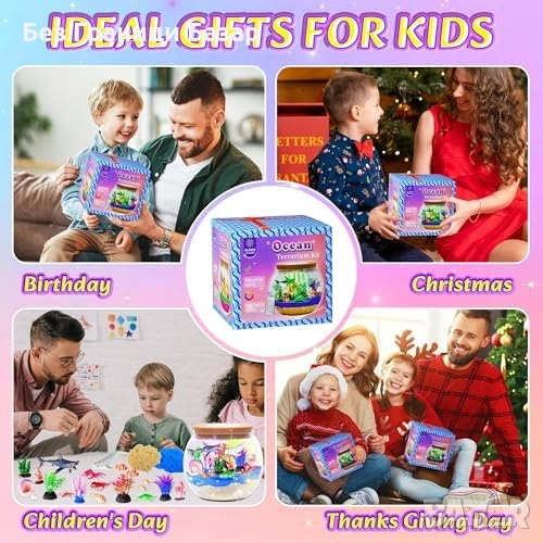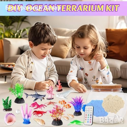 Нов детски океан терариум комплект с фигурки и 13 LED цвята за деца