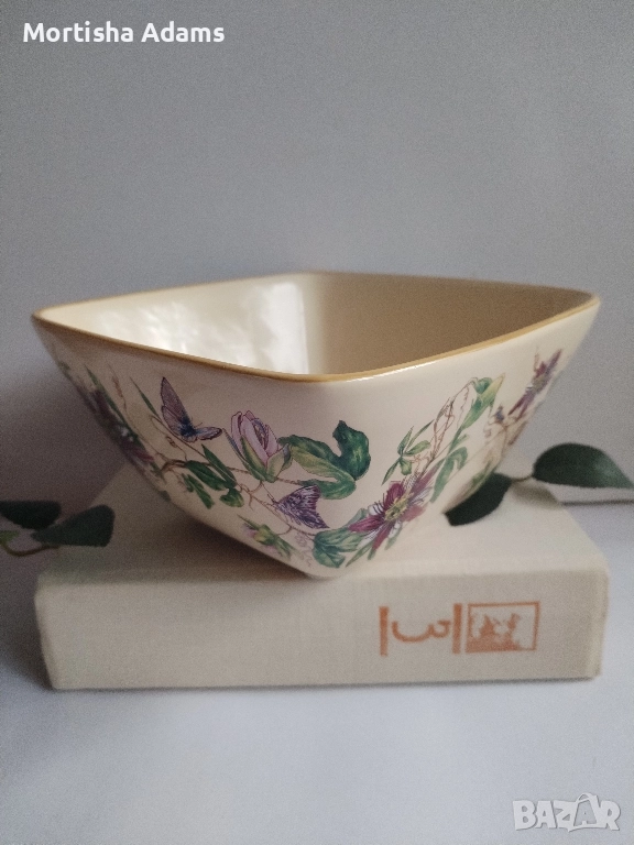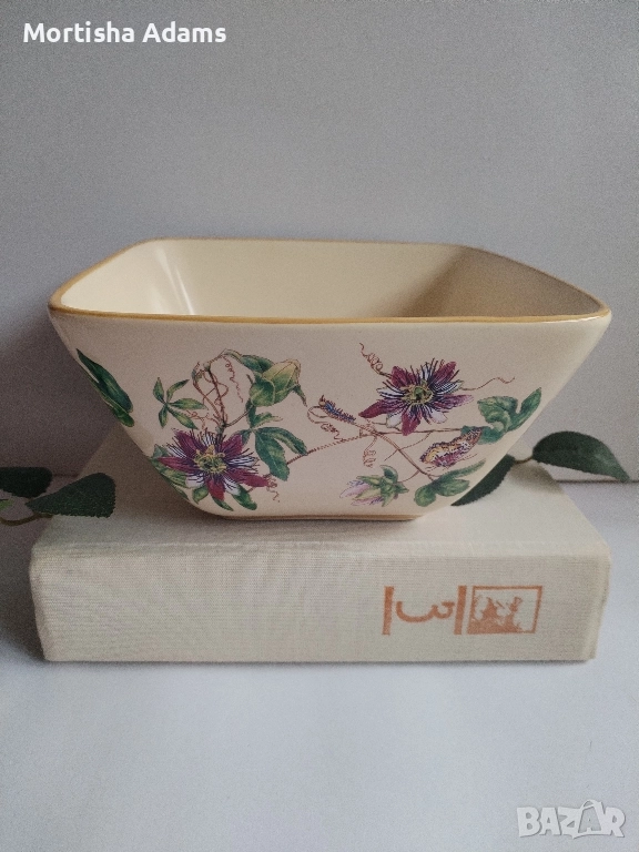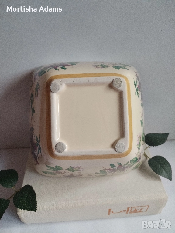 🌿 Винтидж керамична купа/ фруктиера с кремав цвят и красива флорална декорация, която обхваща и четирите страни. Здрава, леко захабяване на дъното отвътре, без маркировка. Размерите са посочени на снимките.