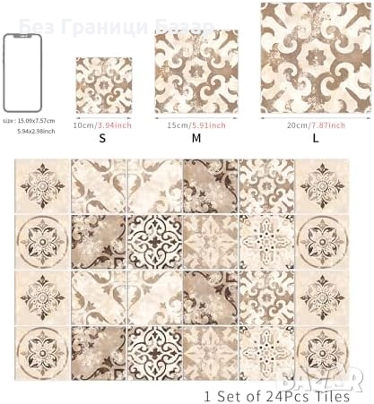 Нови винтидж самозалепващи плочки 24 броя водоустойчиви за кухня баня
