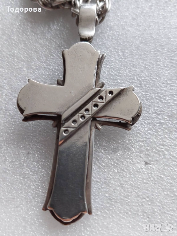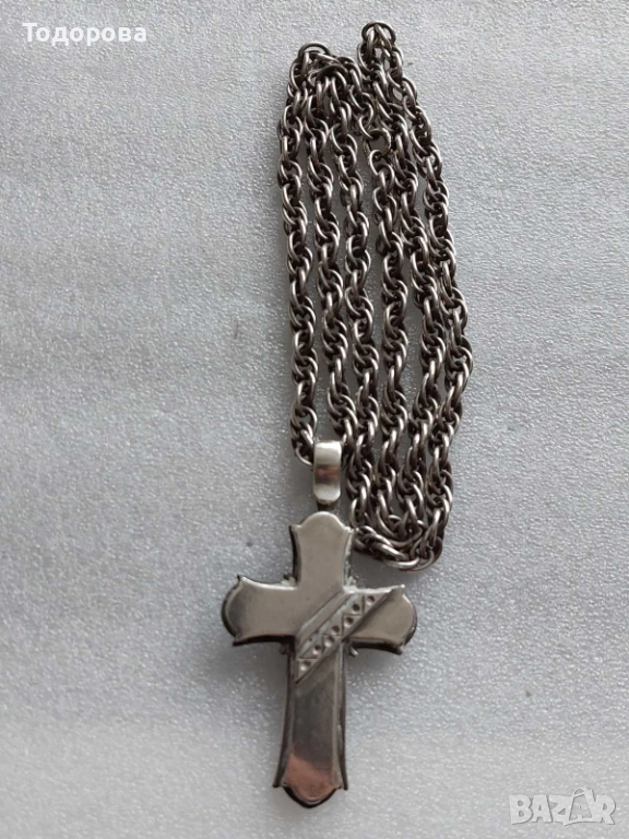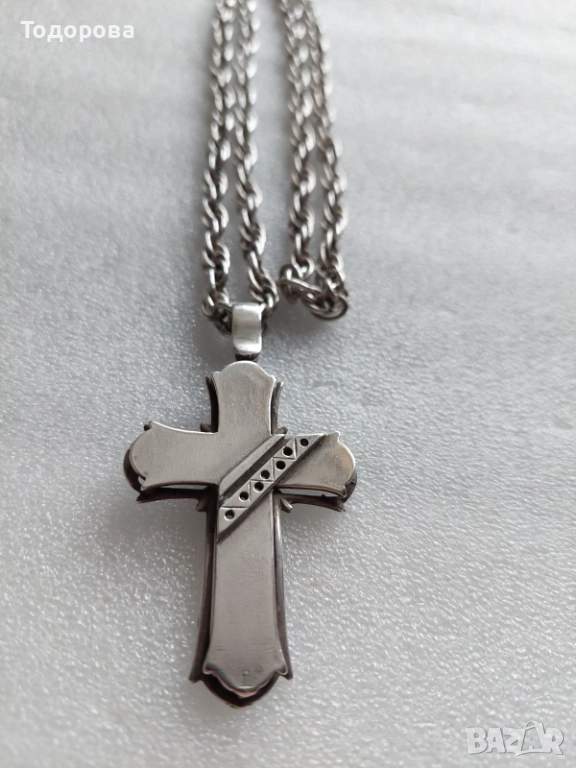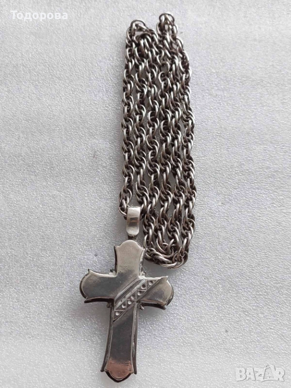 За продажба сребърен кръст и ланец,ръчно изработени,няма детайл който да е правен на машина.Размер на ланеца 70 см.Подходящ за мъж с по сериозно телесложение.Среброто е проба 925.