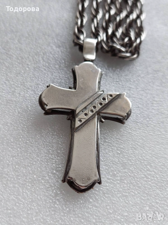 Сребърен кръст със сребърен ланец, ръчна авторска работа-сребро 925/4 евро за грам/ → Обява 52497805