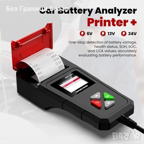 Нов Диагностичен уред за акумулатори с печат и товарен тест 6V–24V