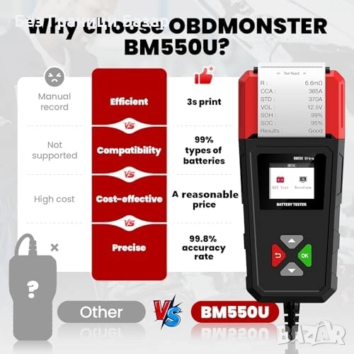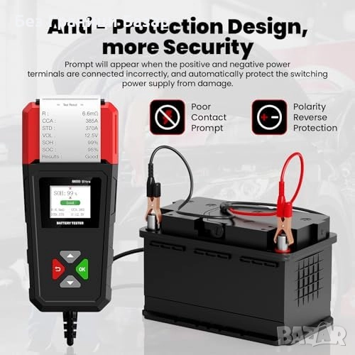 Едновременно отчитане на ключови параметри: SOH, SOC, CCA, напрежение