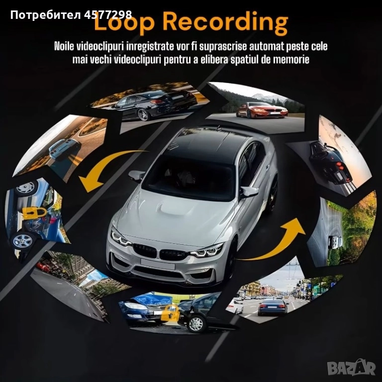 Циклично записване: Автоматично презаписва най-старите записи, когато картата с памет е пълна, осигурявайки непрекъснат запис.