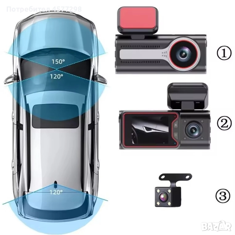 Насладете се на пълно видео покритие и повишена безопасност зад волана с тройната камера за кола с три режима. Идеална за запис на пътувания, осигуряване на доказателства в случай на инциденти и наслаждаване на живописни пейзажи, тази система от камери предлага набор от високоефективни функции: