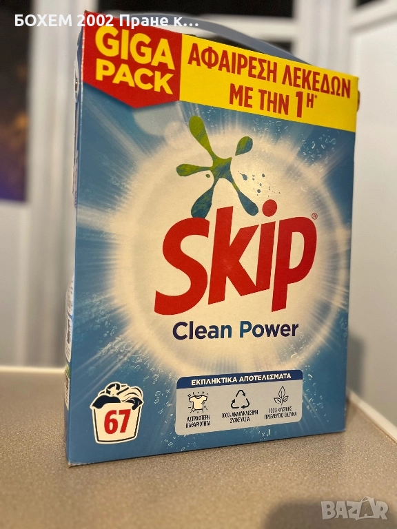 Продавам Skip Clean Power – висококачествен прах за пране, подходящ за бяло и цветно пране.