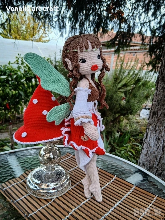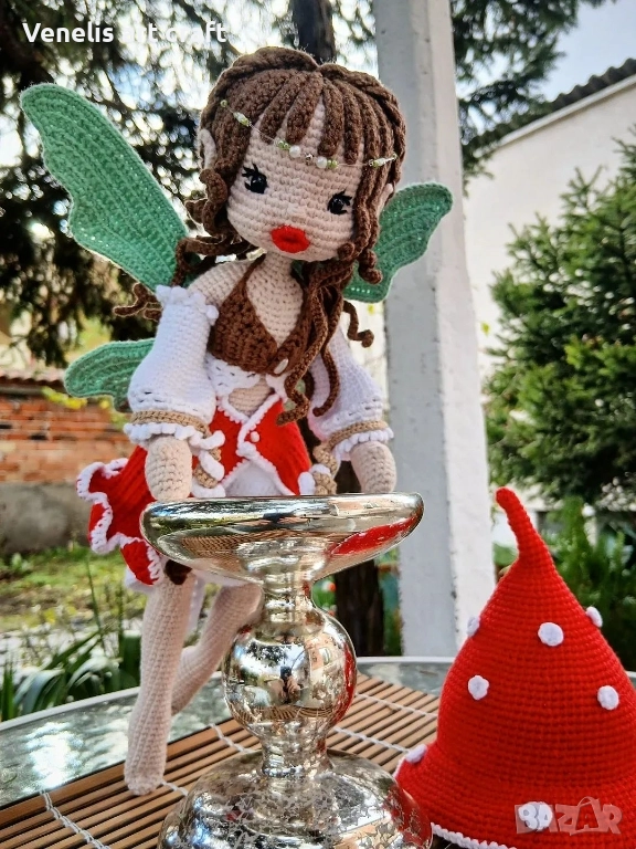 Плетена кукла горска фея Флори /Феята на Гъбите