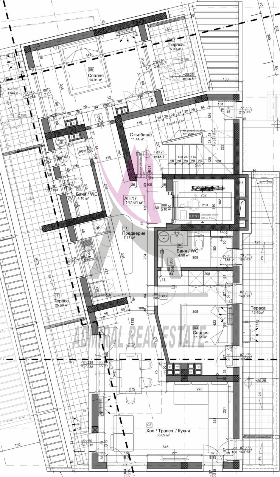 Недвижими имоти 'Admiral Real Estate' Ви предлага за продажба просторен тристаен апартамент, находящ се в сграда тип ново строителство, в непосредствена близост до Лидл и УМБАЛ Св. Марина . Имотът е разположен на осми етаж в девететажна сграда, която е в процес на изграждане. Доказан строител с високо качество на изпълнение и съвременни технологии. Жилището се състои от входно антре, всекидневна с кухненска част, две спални, две санитарни помещения, тераса. Общата площ на апартамента е 166 кв.м. Предлага се възможност за закупуване на външни и подземни паркоместа. Сградата се намира в район с изградена инфраструктура и отлична локация в близост до супермаркети, болници, учебни заведения и спирки на градски транспорт. Подходящ избор за семейства, търсещи комфорт и удобство в динамична градска среда. Гъвкави схеми на плащане : 35% при предварителен договор, 35% при акт 14, 30% при акт 15. Недвижими имоти 'Admiral Real Estate' предлага пълно съдействие при необходимост от банково финансиране с преференциални условия. За повече информация и огледи : Валентина Игнатова Тел. 0878 699 443 Код на офертата : 229390