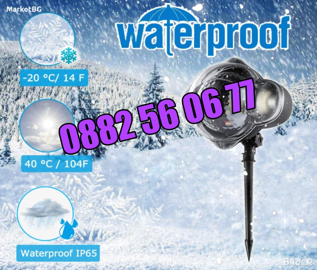 Коледен прожектор падащ сняг, Коледен прожектор със снежинки Snowfall